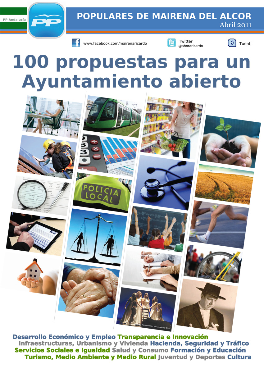 Desde hoy hasta el inicio de la Campaña Electoral, que es el 6 de mayo a la 12:00, compartiremos con todos ustedes 100 propuestas para hacer de Mairena de Alcor un Ayuntamiento abierto.