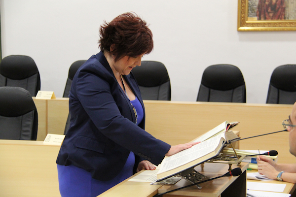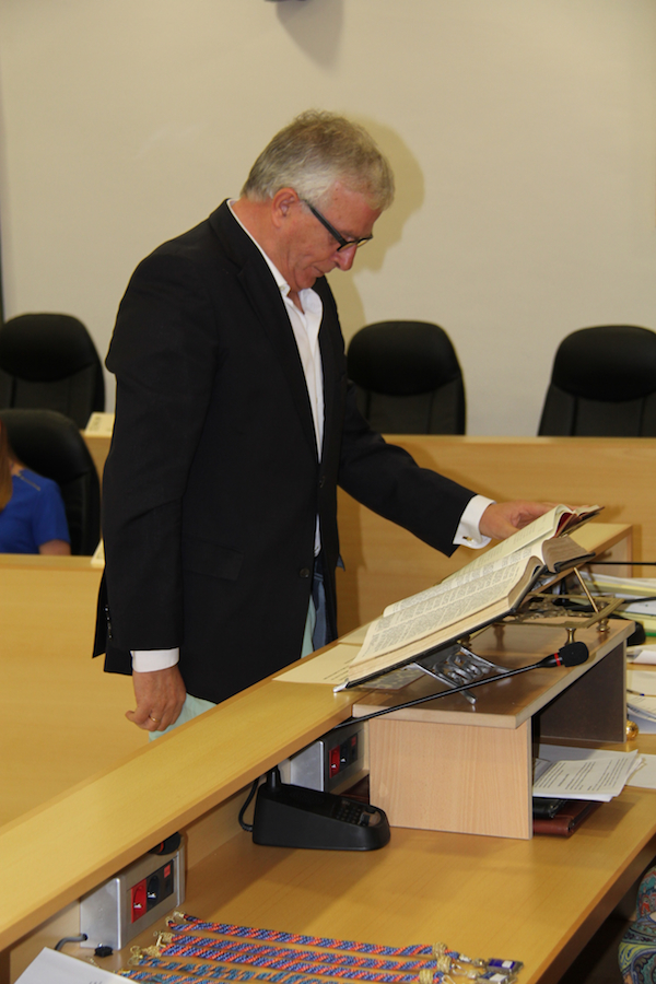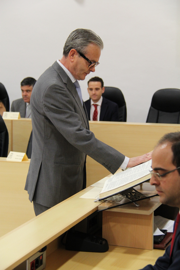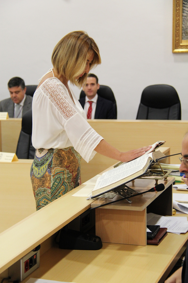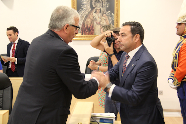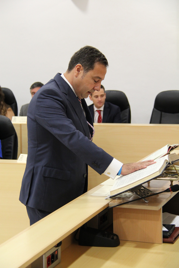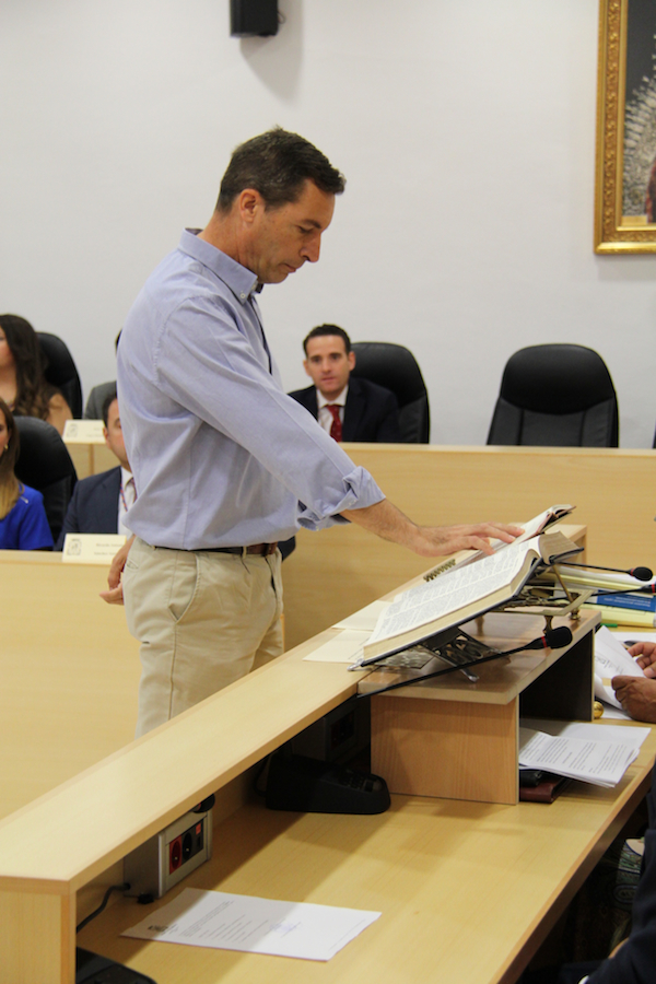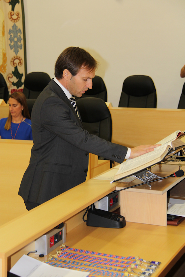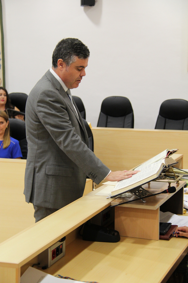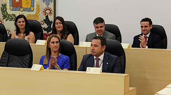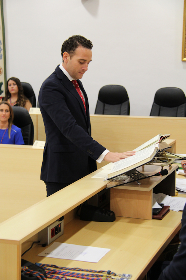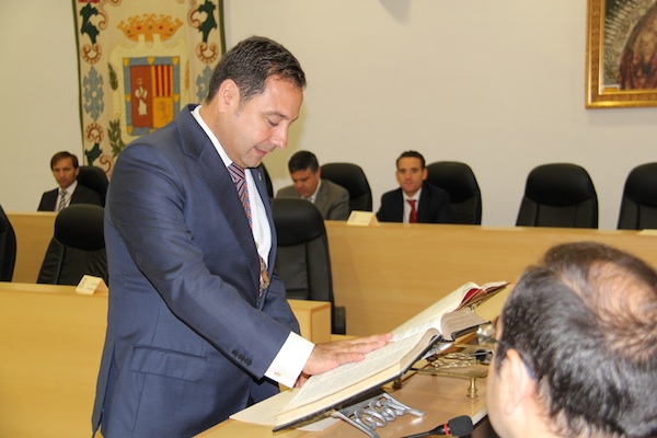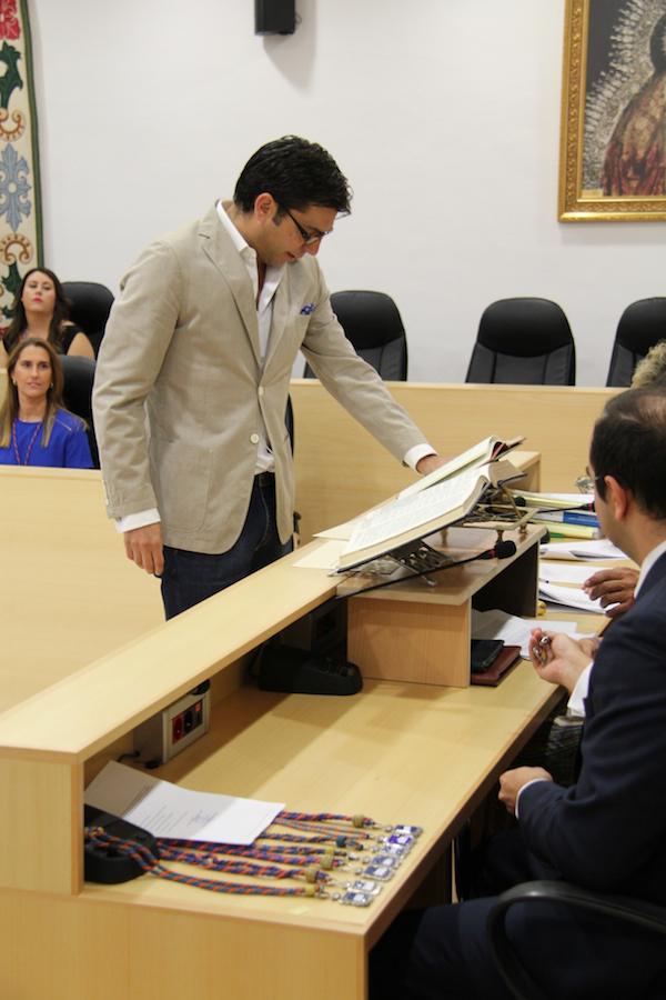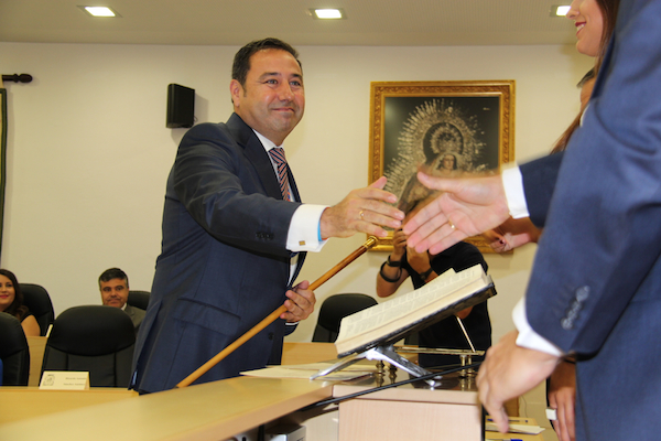 Pasadas las 11 de la mañana, los concejales elegidos en las urnas con mayor y menor edad, Juan Galocha y María Carrión (ambos del PP), presidieron provisionalmente el Pleno formando la llamada ‘Mesa de Edad’, tomando juramento o promesa a sus actas a los representantes de los diferentes partidos políticos. Posteriormente, se procedió a la votación del cargo de alcalde con el resultado de 11 votos para Ricardo Sánchez (PP), 8 votos para Rocío Sutil (PSOE) y 2 votos para José Carlos Copete (IU), por lo que gracias al voto de María Antúnez (PA) junto a los 10 de los concejales populares, Ricardo Sánchez fue proclamado alcalde de la localidad y, entre grandes aplausos de un Salón de Plenos lleno a reventar, le fue entregado el bastón de mando que simboliza dicho cargo.